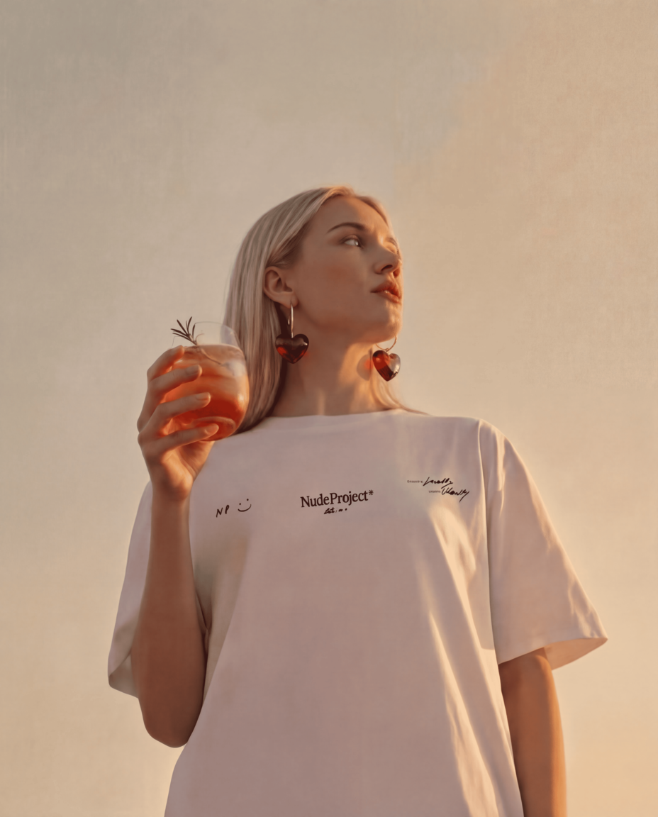 Inspirado en el lenguaje estético de Nude Project, creé una serie de visuales generados con IA que reinterpretan el estilo de la marca a través de la inteligencia artificial. El objetivo era estudiar cómo las herramientas generativas pueden expandir la imagen de moda manteniendo la actitud, emoción e identidad visual asociadas al streetwear actual.
